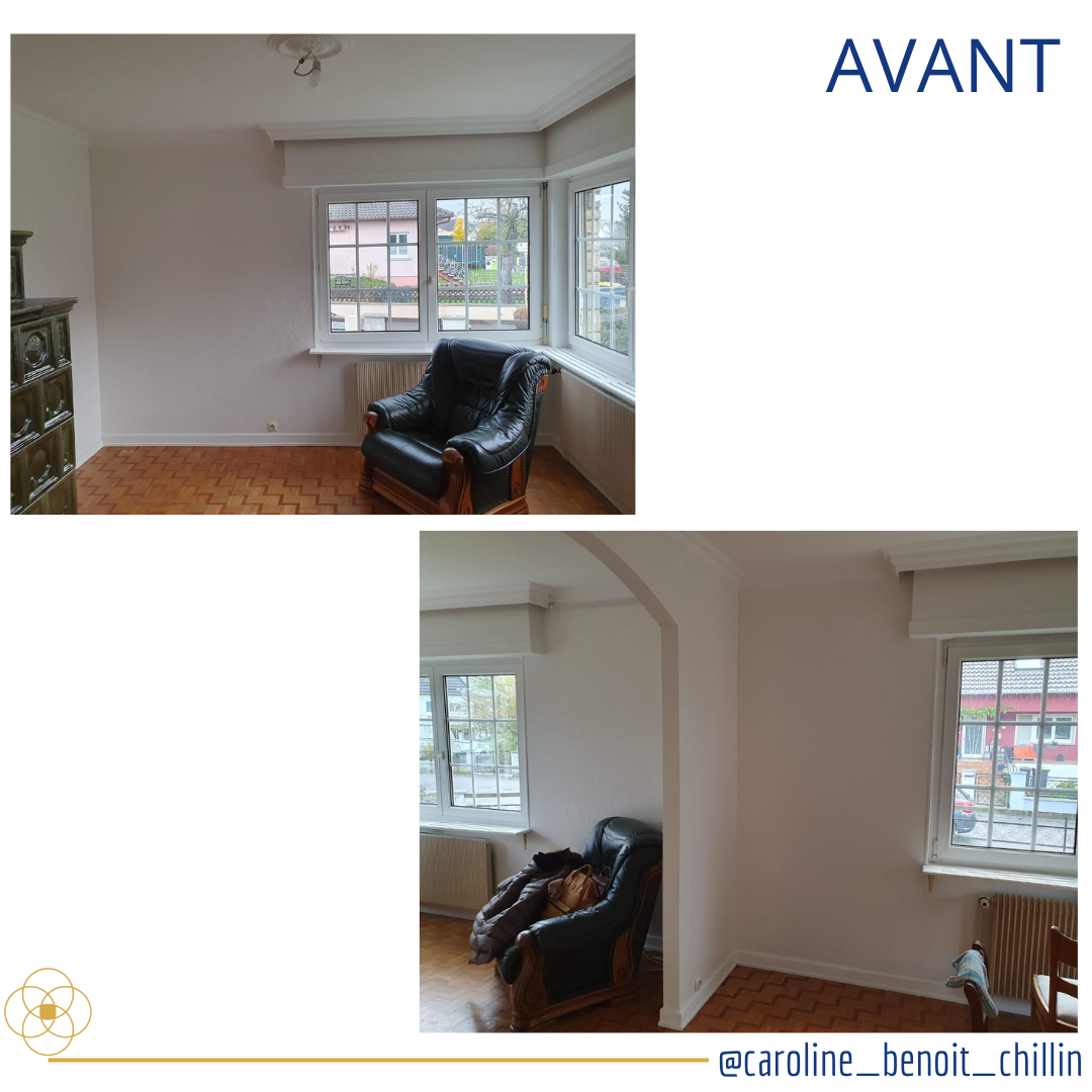 - Un séjour avec du potentiel, mais à rafraîchir et à ouvrir sur la cuisine.