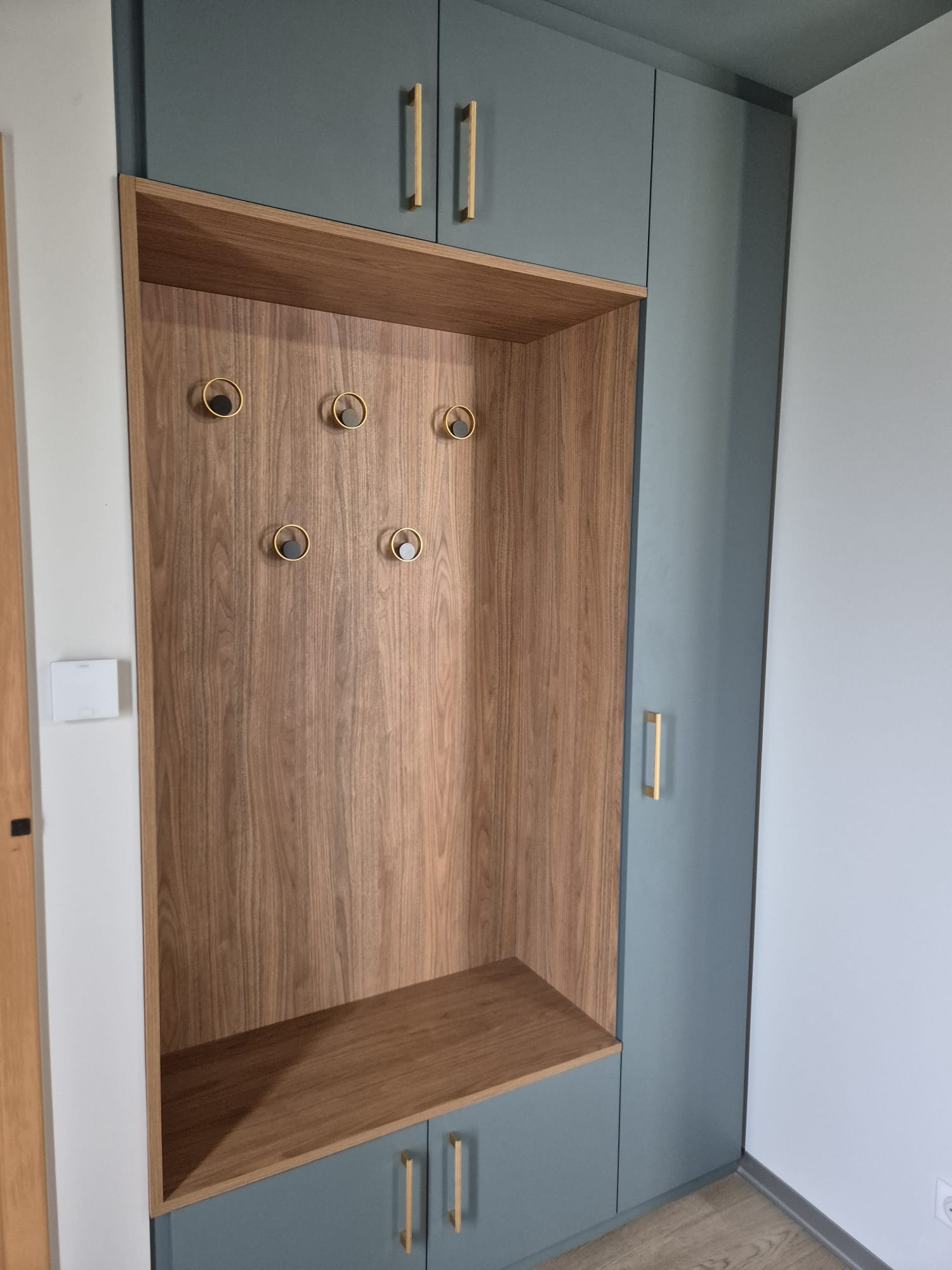 Dans cette maison de cinq personnes, l’entrée était à l’origine asymétrique, peu fonctionnelle et presque dépourvue de rangements, malgré sa belle surface.