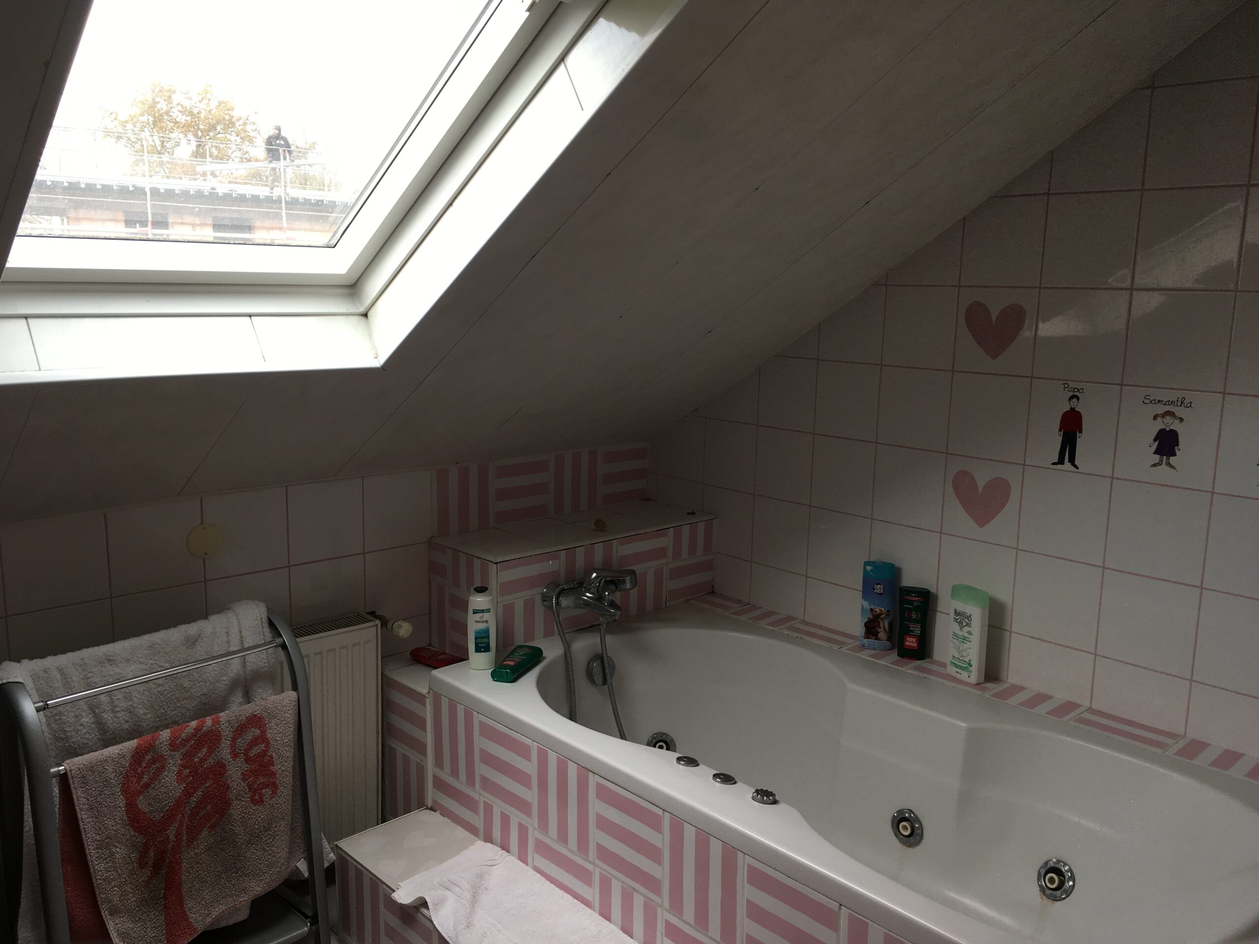 - Une baigoire a été placée sous le rampant pour permettre de placer une douche.